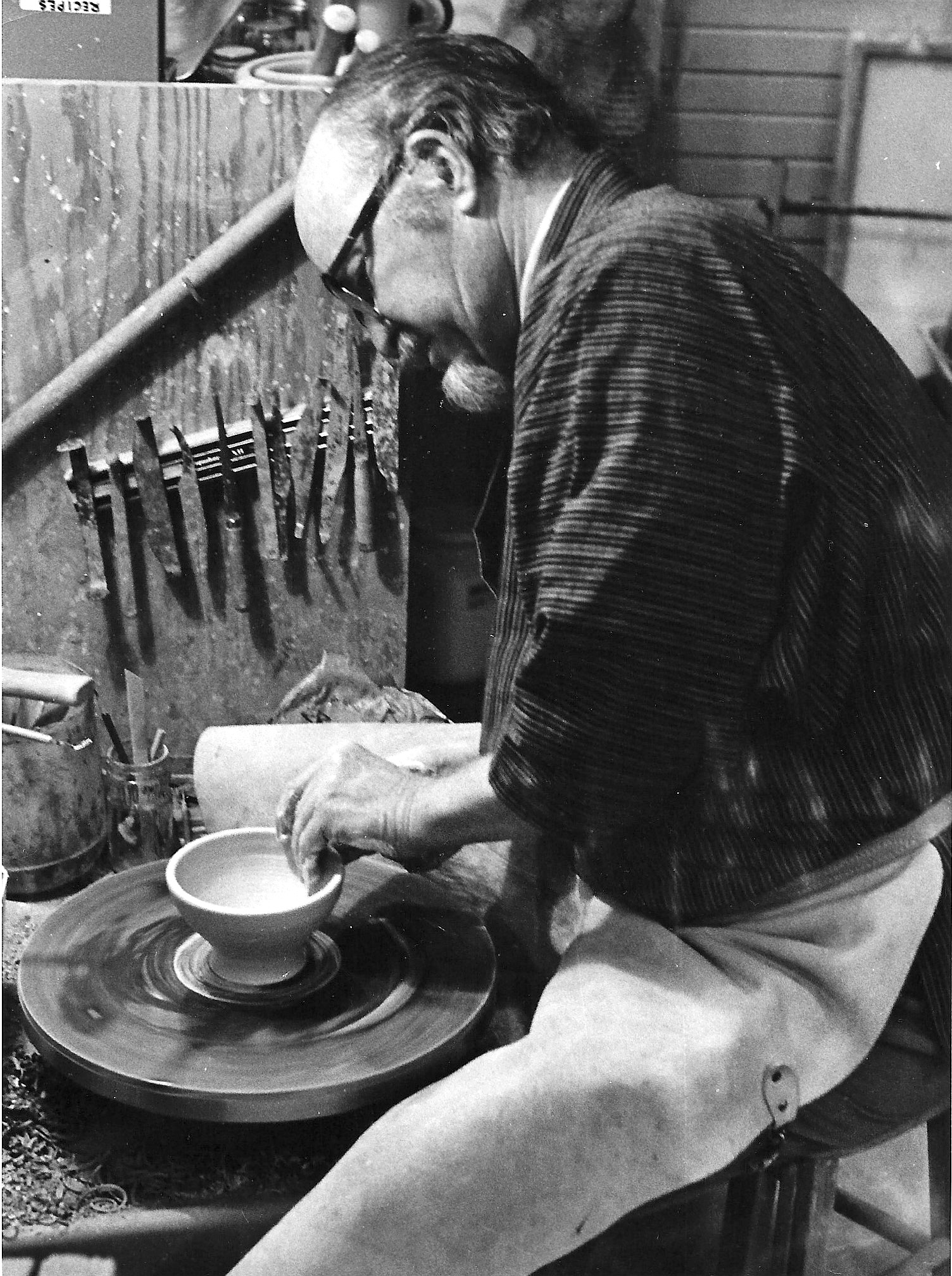 Karl Martz at the potter's wheel, 1977,