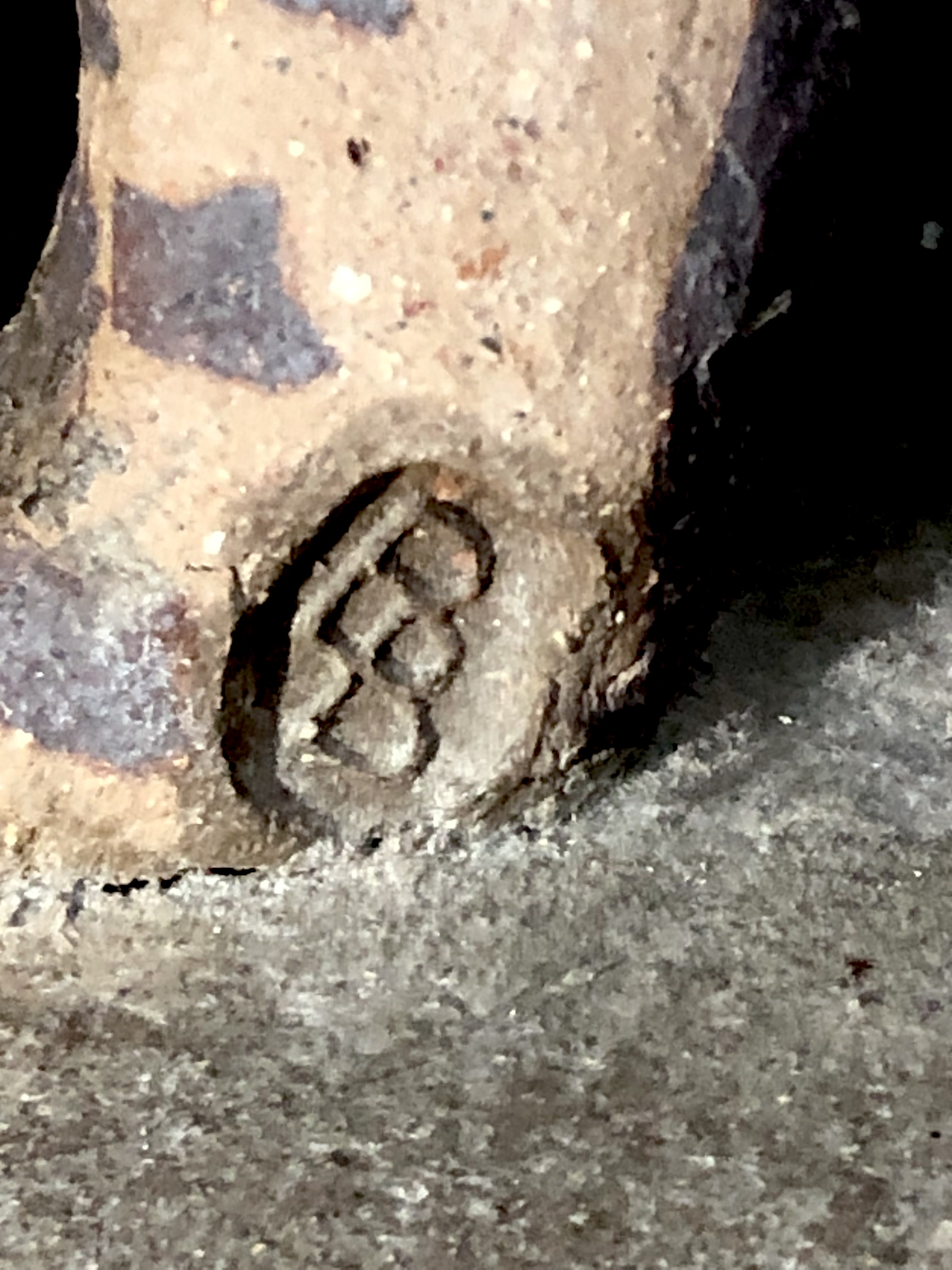 "Serval of the Savannah" by Becky Brown, 1980. 20 inches (50 cm) tall. Cone 3 unglazed stained earthenware in browns, tans, and ivory. Collection of Gabe & Sarah Martz.